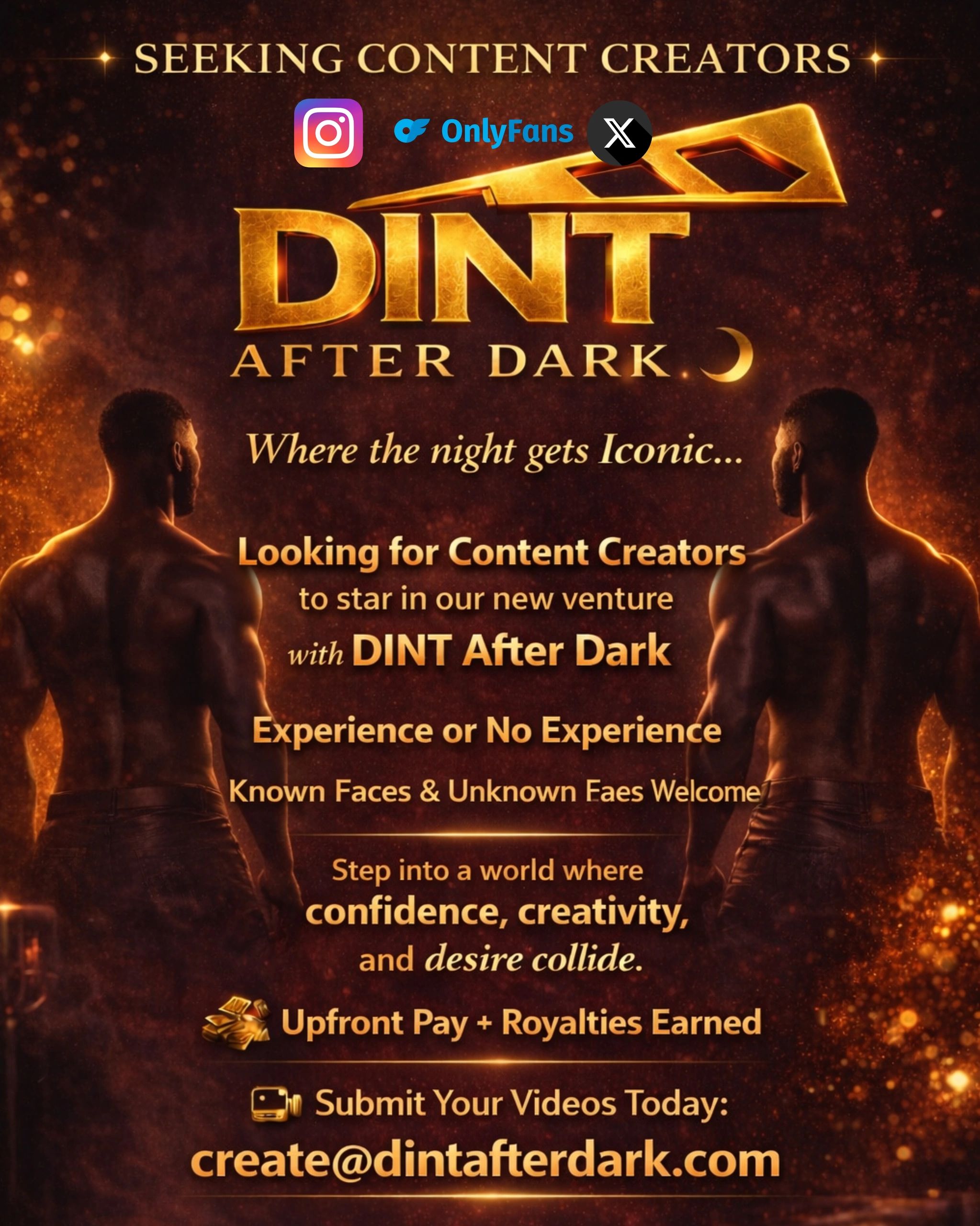 Please send your audition video to our designated CONTENT CREATORS Email;create@dintafterdark.com